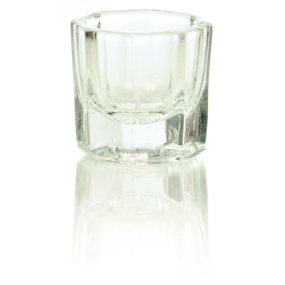 This clear glass dish is designed for the mixing of tint and peroxide prior to a tinting application.