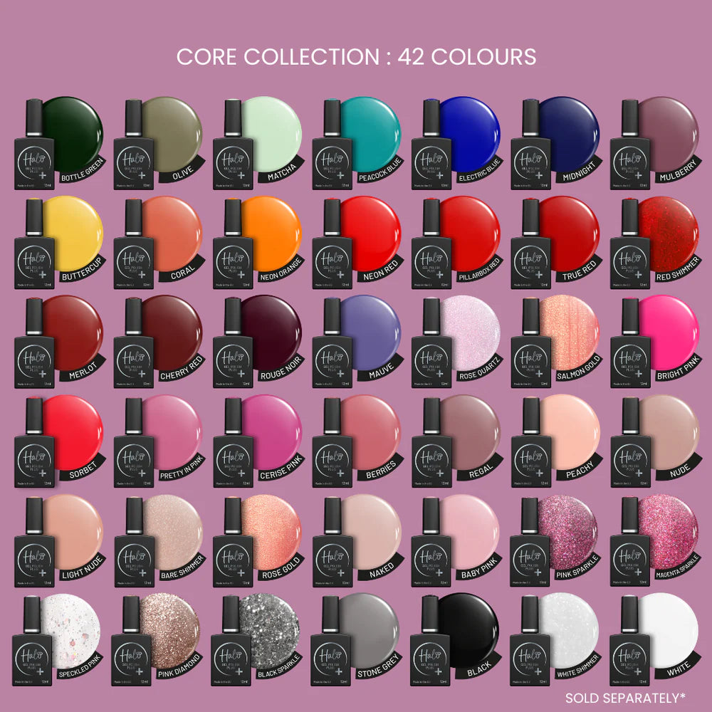 Experience the ultimate in Hema Free Gel Polishes with Halo Gel Polish Plus – a new premium gel polish formula designed to deliver perfect coverage and long-lasting results. Ideal for professional nail techs, this gel nail polish range offers a vibrant selection of highly pigmented shades, with 42 colours perfect for both seasonal manicures and everyday wear.
