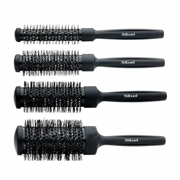 Heat retaining professional brush set from Sibel with four brushes with nylon bristles which withstands temperatures up to 175 degrees.